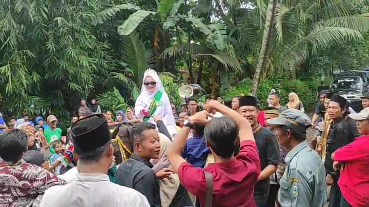 Salah satu warga desa Banjurpasar WR mengungkapkan antusiasnya menyaksikan pawai Ta’aruf yang berada Desa Banjurpasar.