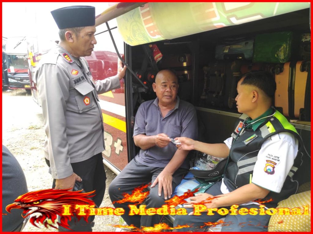 Tak kalah penting, kesehatan pengemudi juga menjadi perhatian utama. Tim Kesehatan Dokkes Polres Magetan melakukan pengecekan kesehatan kepada seluruh sopir bus sebelum keberangkatan. Pemeriksaan meliputi tekanan darah, kondisi fisik umum, serta memastikan pengemudi dalam keadaan prima dan tidak dalam kondisi sakit atau pengaruh obat obatan yang berbahaya.