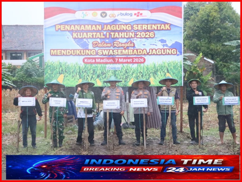Itime. Kota Madiun – Dalam rangka mendukung program pemerintah terkait swasembada pangan nasional, Polres Madiun Kota melaksanakan kembali kegiatan penanaman jagung kuartal I pada hari ini, Sabtu (07/03/2026) bertempat di Jalan Serayu, Kecamatan Taman, Kota Madiun.
