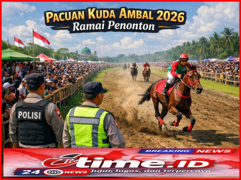 Itime. Kebumen — Ribuan penonton memadati ajang pacuan kuda yang digelar di Lapangan Krida Turangga, Desa Kaibonpetangkuran, Kecamatan Ambal, Kabupaten Kebumen, pada momen libur Lebaran 2026. Tingginya antusiasme masyarakat membuat aparat kepolisian turun langsung untuk melakukan pengamanan sekaligus memberikan imbauan keselamatan.